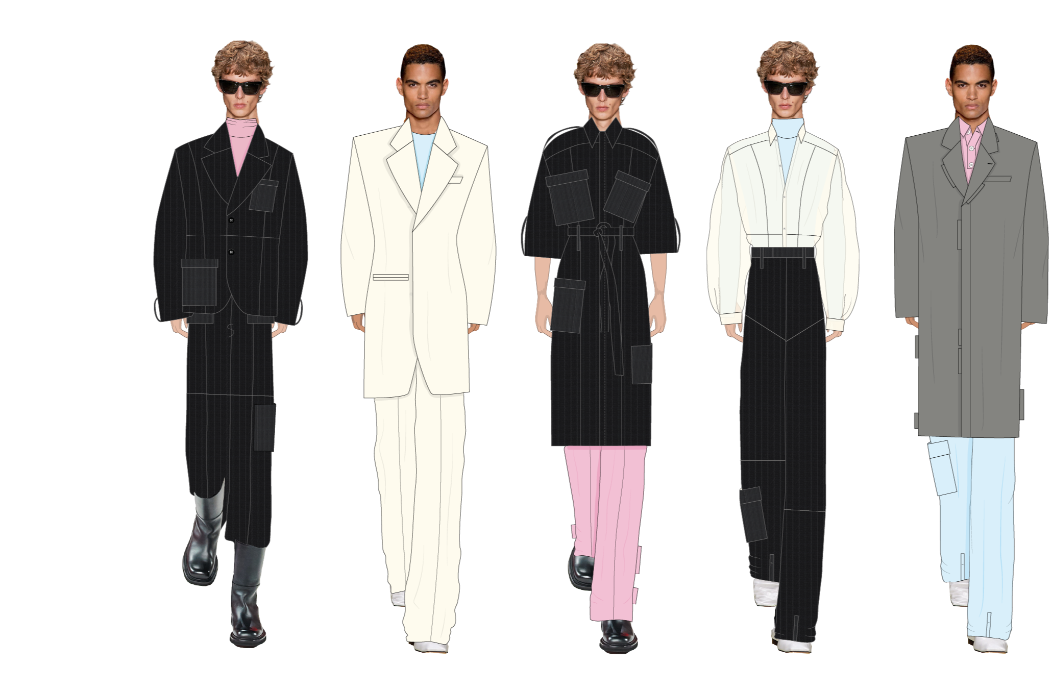 (Formel menswear, 2020) Denne kollektion handler om at mænd klæder sig næsten udelukkende maskulint i vores nuværende tid, og kun få tør eller har lyst til at udforske deres mere feminine side.